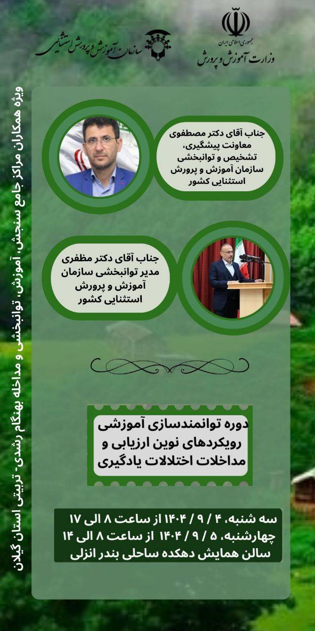 به گزارش روابط‌عمومی اداره آموزش‌ و پرورش استثنایی گیلان، این کارگاه توانمندسازی با هدف ارتقای دانش تخصصی و به‌کارگیری شیوه‌های علمی و روزآمد در شناسایی، ارزیابی و طراحی مداخلات آموزشی و توانبخشی برای دانش‌آموزان دارای اختلالات یادگیری برگزار شد.